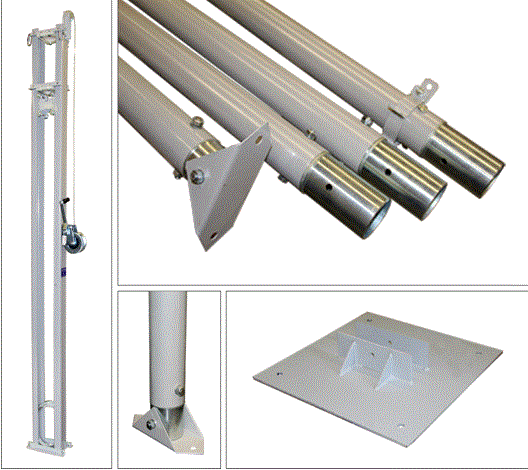 Мачты составные стальные серии МС-С модель МС-С-14 состоят из секций, изготовленных из круглых стальных труб 2 м длиной одинакового диаметра и толщиной стенки (76х1,5 мм), которые соединены между собой с помощью стопорных болтов, пружинных шайб и гаек, что облегчает процесс развертывания. Цвет отличный от "серый металлик" (RAL 9006) + 12% к цене мачты. Максимальная допустимая нагрузка для данной модели составляет 38 кг.